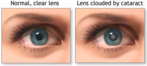 A cataract simply refers to ‘opacity of the lens’ inside the eye. Looking through a cataract can be thought of as a little bit like looking through an old stained piece of glass – instead of a clear new sheet.