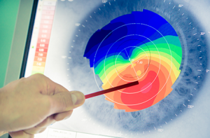 From the patient’s history, a detailed slit lamp examination as well as sophisticated corneal imagery which can assess the profile of the cornea.